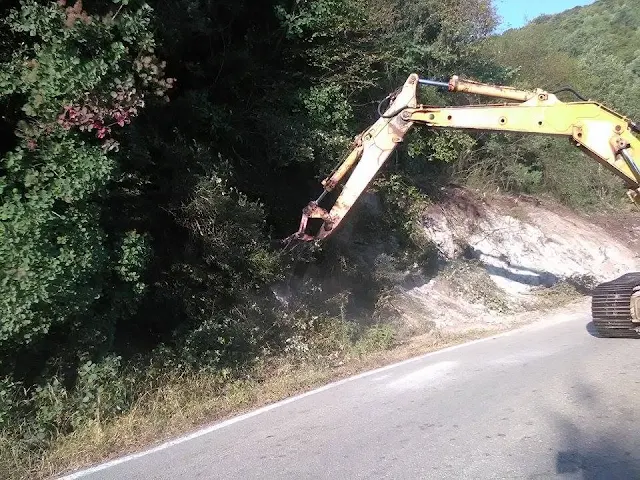 Άλλο μηχανημα επρεπε να βαλει ο Δημος. Πρωτον Οι ερπυστριες στην άσφαλτο τη καταστρέφουν. Δευτερο. Το μηχανημα αυτο δεν ενδεικνυται για αυτη τη δουλεια στα πρανη και αντιπρανή ενος δρομου. Άλλο να κοβεις τα κλαδια να βλεπει ο οδηγος με χορτοκοπτικα χεριού η με μηχανημα με χορτοκοπτικο βαρειας χρησης και αλλο να ξεριζωνεις προφανως ριζες και να φευγει και χωμα προς τα κατω με τον εκσκαφεα. Ισως αργοτερα με τις βροχες εχει προβλημα ο δρομος και η ευστάθεια του πρανούς που στηρίζεται.Ας ρωτησουν τους πολιτικους μηχανικους στη τεχνικη υπηρεσια αν ηταν σωστη επιλογη μηχανηματος.