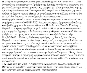 Κατέθεσαν ΑΝΑΦΟΡΑ την επιστολή της «Αμφικτιονίας Ακαρνανών - Σύλλογος Πολιτισμού – Περιβάλλοντος και Έρευνας Ιστορίας» Βόνιτσας Ν. Αιτωλοκαρνανίας, με το οποίο ζητά να υλοποιηθεί η δέσμευση της Εφορείας Αρχαιοτήτων Αιτωλοακαρνανίας ότι το αρχαίο χρυσό στεφάνι που βρέθηκε το 1973 στη θέση Καλαντζέικα θα τεθεί σε δημόσια θέα για να το δουν οι κάτοικοι όποτε ζητηθεί, κάτι που δεν έγινε ποτέ πράξη παρά το σχετικό αίτημα της Κοινότητα Θυρρείου............