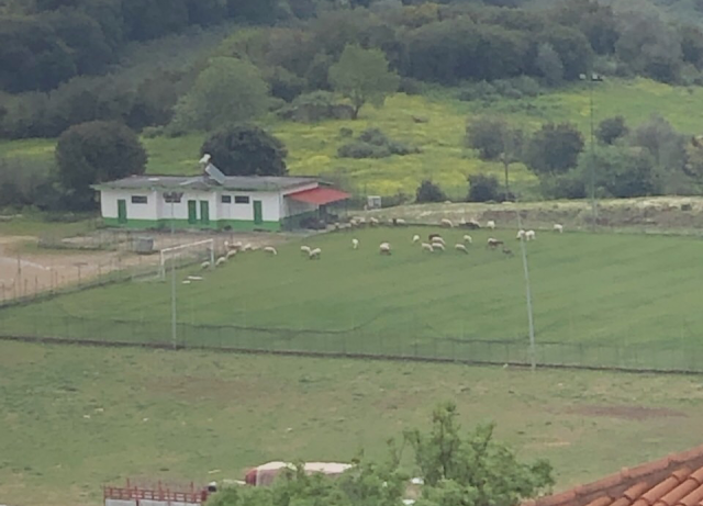 Στο γήπεδο της Κατούνας με φυσικό χλοοτάπητα, το μοναδικό στη περιοχή μας, που πέρισυ έγιναν τα εγκαίνια, ζήσαμε να δούμε και το απίστευτο: Να έχουν μπει στο γήπεδο Πρόβατα και να βοσκάνε το χορτάρι.