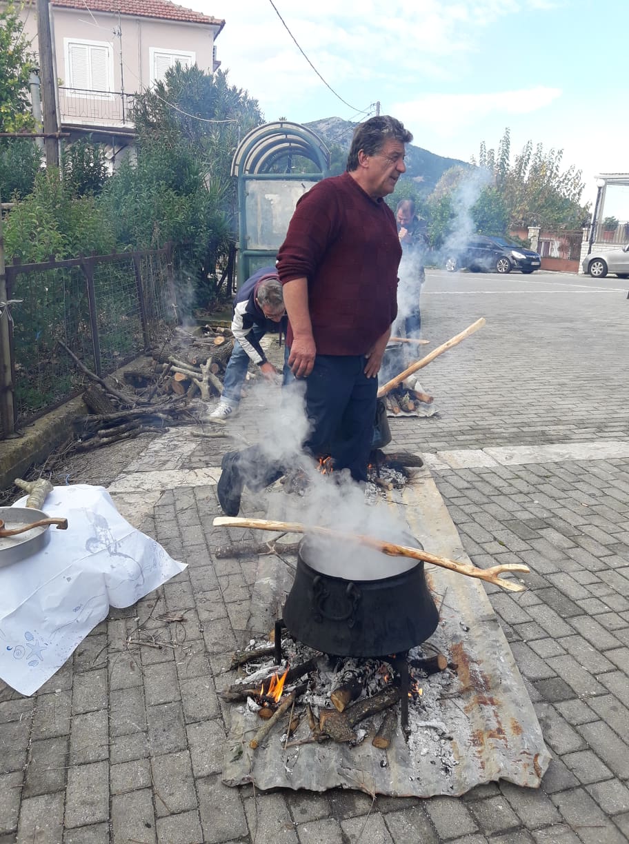 Οι άνθρωποι του Συλλόγου έστησαν τα καζάνια στη πλατεία του χωριού και με τη βοήθεια της φωτιάς ξεκίνησε το λιώσιμο του λίπους για να μείνει στο τέλος ξεροψημένη η τσιγαρίδα, η οποία σερβίριστηκε σε όλους τους επισκέπτες. Στην εκδήλωση υπήρχε τσιγαρίδα, άφθονο κρασί και ντόπια εδέσματα, ενώ το κέφι και ο χορός κράτησε μέχρι αργά το απόγευμα.