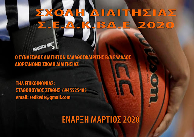Ο Σύνδεσμος Διαιτητών Καλαθοσφαίρισης Βορειοδυτικής Ελλάδος διοργανώνει σχολή διαιτησίας τον φετινό Μάρτιο.