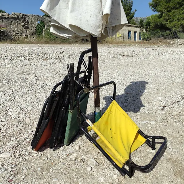 Δεκάδες ομπρέλες και ξαπλώστρες τοποθετημένες μόνιμα και κλειδωμένες στην παραλία. Κι όσο και να είναι διατεθειμένος κανείς να αντιληφθεί ότι ορισμένοι δεν μπορούν και δεν θέλουν να υποστούν την ταλαιπωρία του… κουβαλήματος, άλλο τόσο είναι αδύνατον να γίνει ανεκτή η ασέβεια όχι μόνο προς τους υπολοίπους μα κυρίως στο περιβάλλον και σε χώρους που δεν είναι ιδιωτικοί για να κάνει ο καθένας ότι του «καπνίσει».