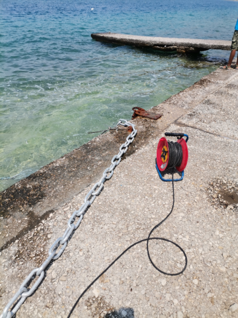 Επίσης οι εξωτερικές χιαστί αλυσίδες τις πλωτής στο πάνω Μύτικα δεν ξεχάστηκαν, απλά έγινε επιλογή να μείνει δεμένη εκεί με τις παλιές αλυσίδες οι οποίες ήταν σε καλή κατάσταση. Σήμερα μπήκαν και καινούργιες χιαστί, που πιάνουν σε πιο απομακρυσμένα σημεία για ακόμη μεγαλύτερη ασφάλεια, σε μία πλωτή που είναι το χειμώνα εκτεθειμένη στα μεγάλα κύματα και πάντα γι αυτή υπάρχει η υποψία κινδύνου.