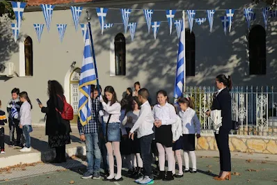 Ακολούθησε επιμνημόσυνη δέηση, των νεκρών του πολέμου, στο Μνημείο Πεσόντων και κατάθεση στεφάνων και στην συνέχεια η παρέλαση από τους μαθητές.