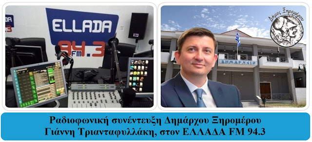 Ραδιοφωνική συνέντευξη του Δημάρχου Ξηρομέρου Γιάννη Τριανταφυλλάκη, στον ΕΛΛΑΔΑ FM 94.3, στην εκπομπή ''ΕΛΛΑΔΑ ΣΗΜΕΡΑ'' με τον Δημοσιογράφο Γιώργο Γεωργιάδη......