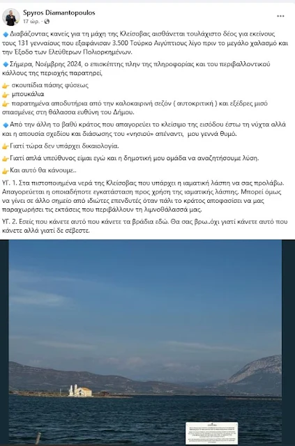 Η ανάρτηση του δημάρχου Ιεράς Πόλεως Μεσολογγίου: