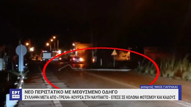 Ο οδηγός, που συνελήφθη, οδηγούσε επικίνδυνα στο δρόμο Ναυπάκτου – Αντιρίου, το αυτοκίνητο εξετράπη της πορείας του, μπήκε στο αντίθετο ρεύμα και έπεσε πάνω σε κολώνες φωτισμού, ενώ προκάλεσε ζημιές και σε σταθμευμένο όχημα.